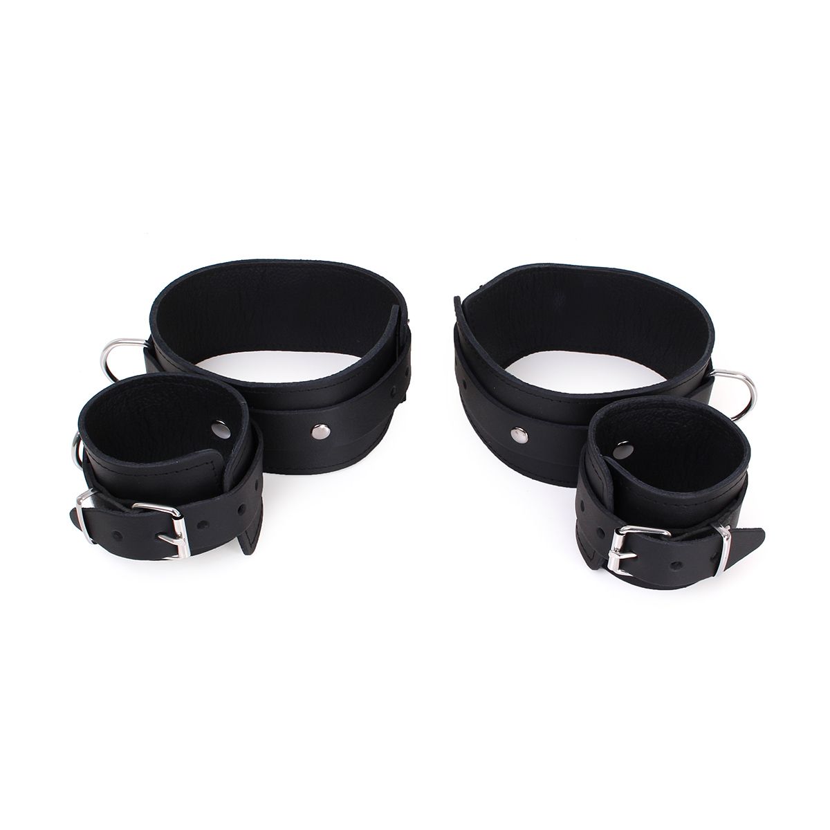 De boeien zijn gemaakt van hoogwaardig leer en voelen stevig aan, terwijl ze comfortabel blijven tijdens gebruik. Dankzij de ruime verstelmogelijkheden is deze set geschikt voor vrijwel iedereen. De armboeien zijn verstelbaar van 8 cm tot 14 cm, en de polsboeien van 6 cm tot 10 cm, wat zorgt voor een perfecte pasvorm.