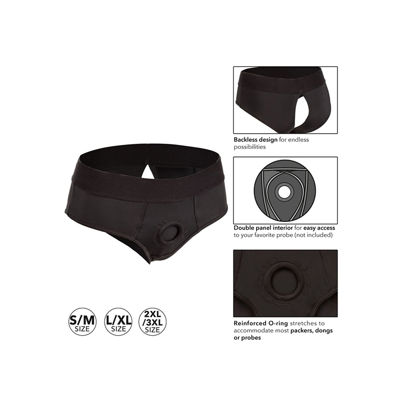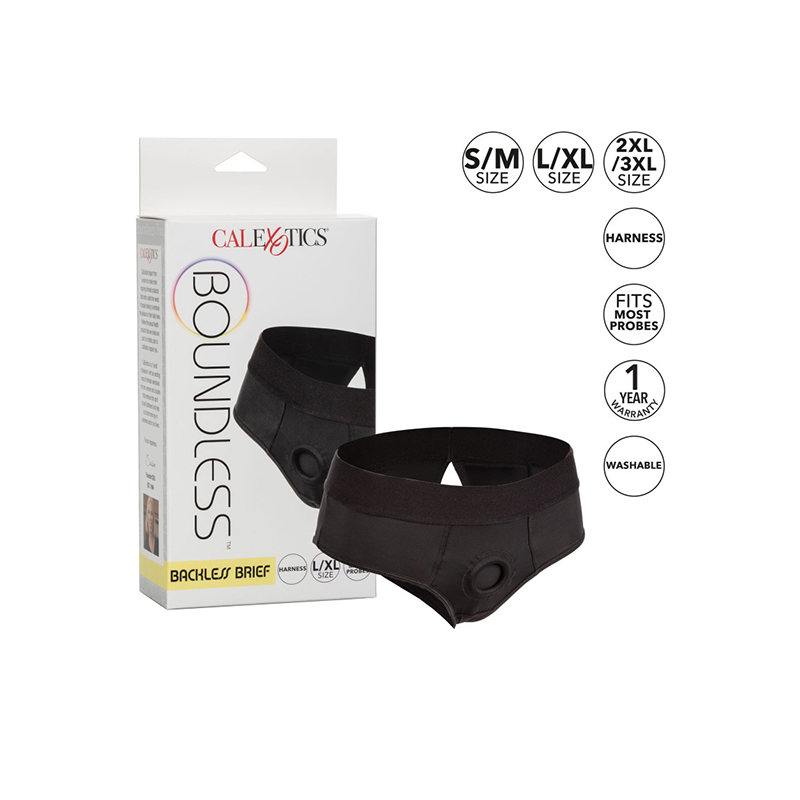 De Boundless Strap-on slip is een ultracomfortabel harnas in de vorm van een gewaagde, backless slip, speciaal ontworpen voor koppels. Geschikt voor zowel beginnende als ervaren gebruikers. De versterkte O-ring biedt plaats aan je favoriete vibrator of dildo. Maak eenvoudig uw favoriete speeltje vast in de ring en geniet. Gemakkelijk schoon te maken door machinewas en hangend te drogen. Verkrijgbaar in S/M, L/XL en XXL/XXXL