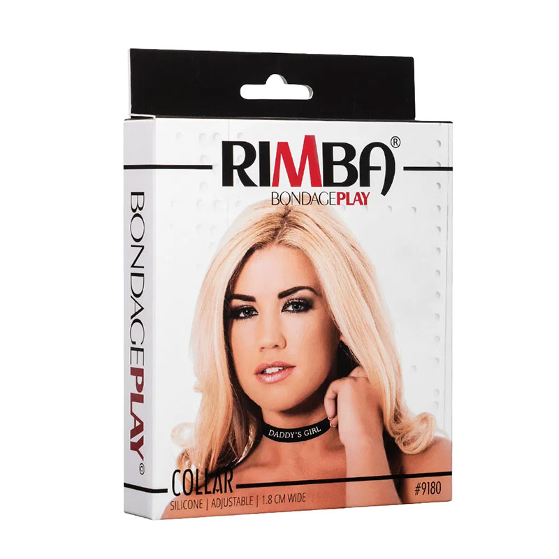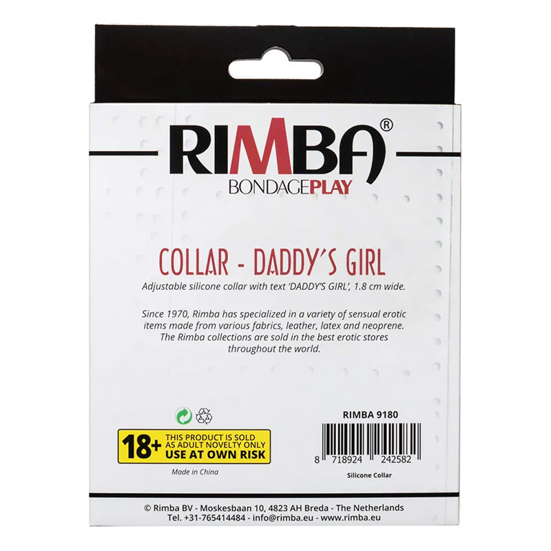 Rimba Latex Play – Halsband met opschrift ‘Daddy’s Girl’ – Zwart & Wit