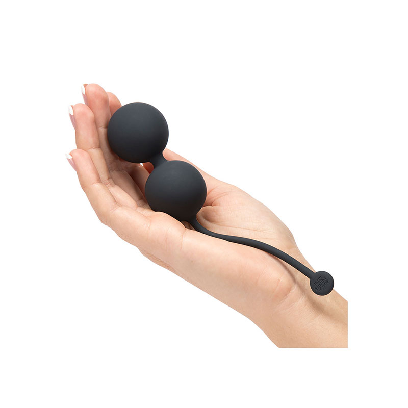 Love ball duo met elastische retourband. De ballen zijn perfect voor een efficiënte bekkenbodemtraining: de balgewichten draaien binnenin en veroorzaken trillingen bij elke beweging, wat leidt tot versterkende spiersamentrekkingen. Met hun gewicht van 70 g zijn de love balls ideaal voor gevorderde gebruikers.