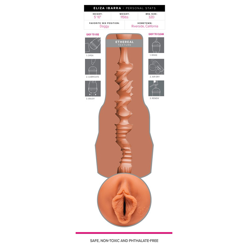 Masturbator Eliza Ibarra van Fleshlight met de origineel gevormde vulva/vagina van de erotische ster. En de zeer divers gestructureerde innerlijke werking komt heel dicht bij Eliza’s strakke lustkanaal en zorgt voor een intensieve, orgastische penismassage tijdens een handjob. Deze versie met Fleshlight structuur heeft een bijzonder smalle opening.