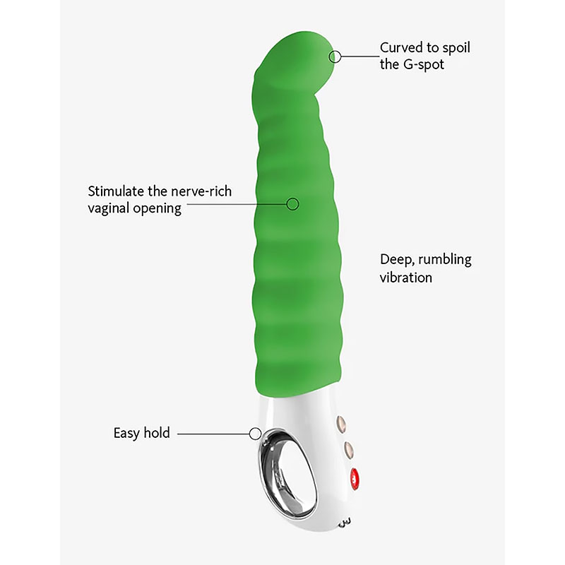 Met zijn vriendelijke, speelse uiterlijk nodigt deze kenmerkende Patchy Paul G5 Vibe je uit om te genieten van krachtige vibraties en een extra flexibele schacht!