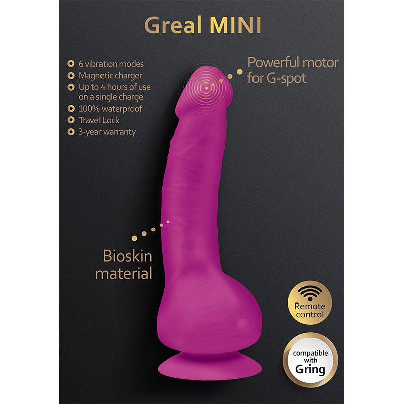 Let op: deze vibrerende dildo wordt niet geleverd met een afstandsbediening. Het is mogelijk om de Greal Mini te verbinden met de GRing XL om de vibraties van de dildo te reguleren.