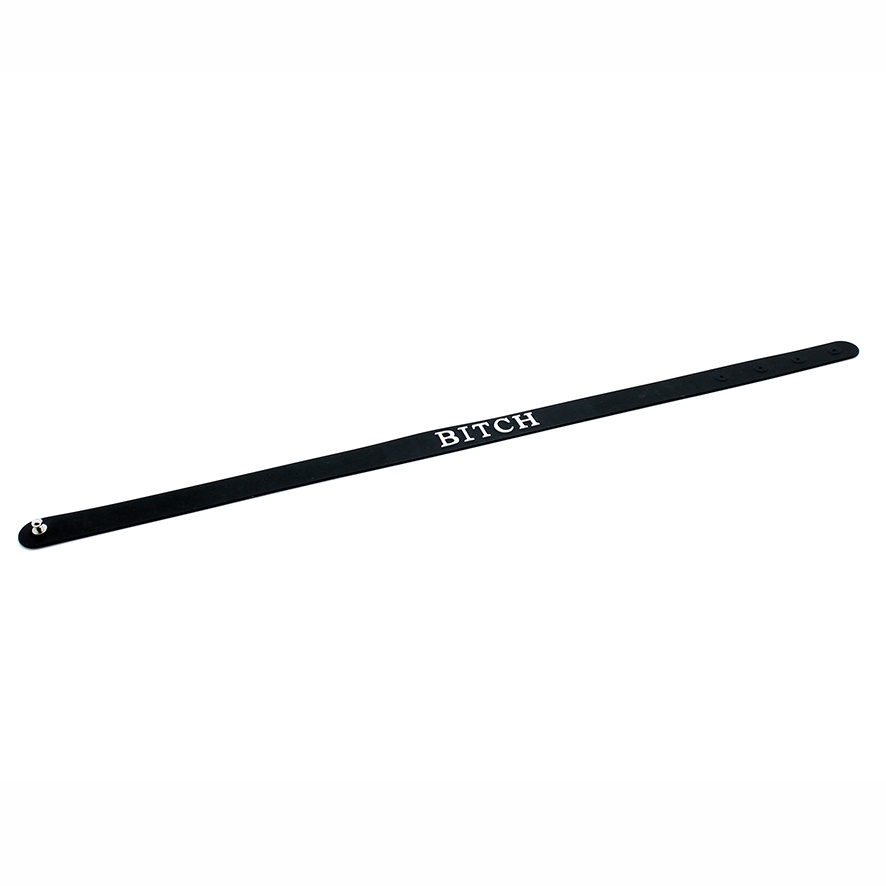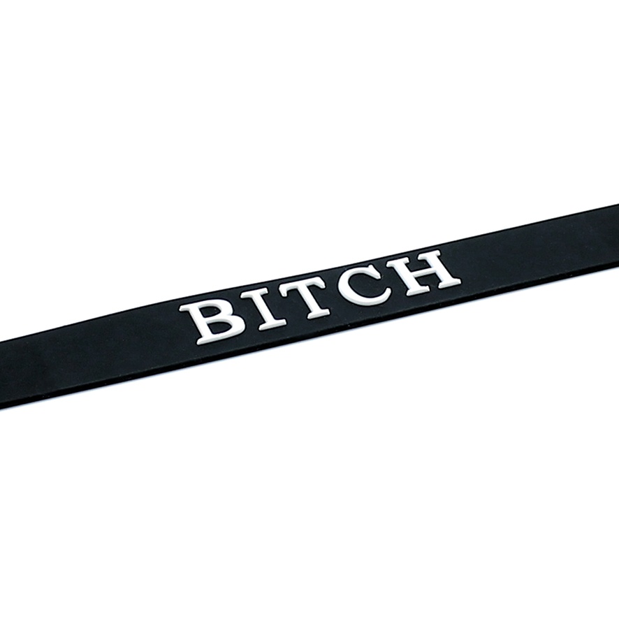 Deze comfortabele en lichtgewicht halsband Bitch van siliconen heeft een verstelbare sluiting aan de achterkant. Zo voelt hij ook voor je partner fijn aan. De in reliëf aangebrachte vermelding ‘Bitch’ op de voorkant maakt tegelijkertijd een statement van jewelste. Ideaal voor een BDSM-sessie of om je onderdaantje een nachtje mee uit te nemen.