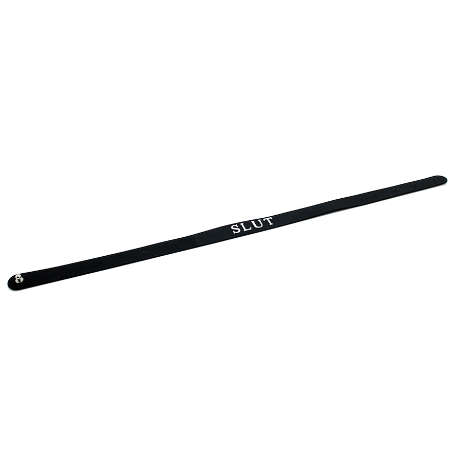 Deze comfortabele en lichtgewicht halsband Slut van siliconen heeft een verstelbare sluiting aan de achterkant. Zo voelt hij ook voor je partner fijn aan. De in reliëf aangebrachte vermelding ‘SLUT’ op de voorkant maakt tegelijkertijd een statement van jewelste. Ideaal voor een BDSM-sessie of om je onderdaantje een nachtje mee uit te nemen.