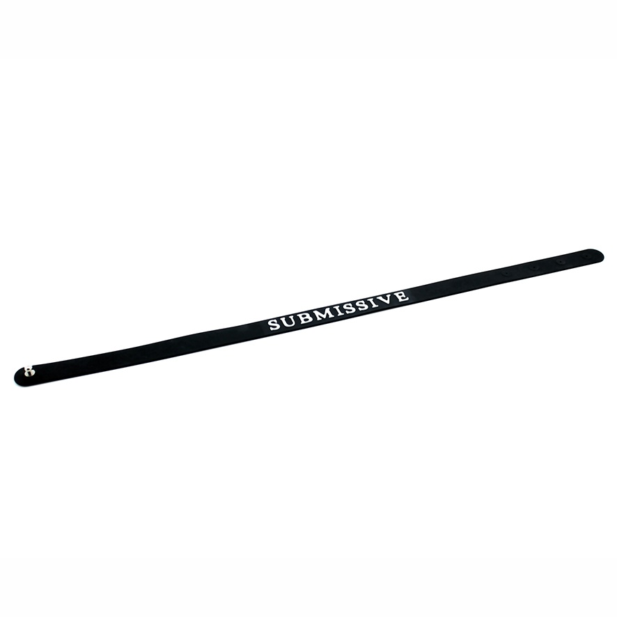 Deze comfortabele en lichtgewicht halsband Submissive van siliconen heeft een verstelbare sluiting aan de achterkant. Zo voelt hij ook voor je partner fijn aan. De in reliëf aangebrachte vermelding ‘Submissive’ op de voorkant maakt tegelijkertijd een statement van jewelste. Ideaal voor een BDSM-sessie of om je onderdaantje een nachtje mee uit te nemen.