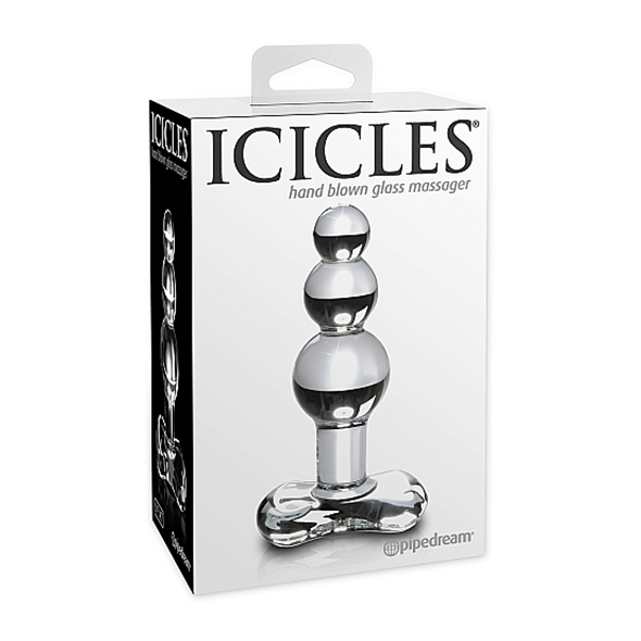 Glazen dildo welke met de hand is gemaakt. De dildo heeft drie bollen wat zorgt voor nog intensere stimulatie, zowel anaal als vaginaal. Met een kleine bol aan de top en de grootste bol aan het uiteinde. Met slanke hals waardoor de anaal plug goed blijft zitten. Het platte uiteinde zorgt voor veilig gebruik. Het glas is glad en voelt fijn aan op de huid. Gemakkelijk op te warmen of af te koelen met water.