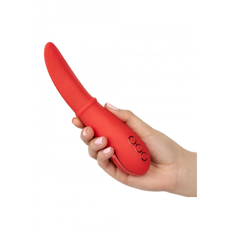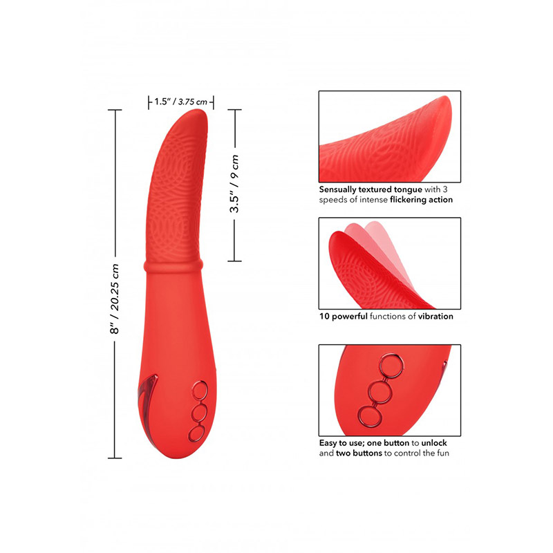 De Laguna Beach Lover is een krachtige stimulator met 3 snelheden van een sensueel gestructureerde tong. Hij heeft 10 functies van vibratie, pulsatie en escalatie. Gemaakt van Lichaamsveilig Silicone. De State-of-the-art geheugenchip hervat zijn laatst gebruikte functie. Gemakkelijke drukknopbediening met veiligheidsvergrendeling. USB oplaadbaar – inclusief oplaadsnoer. Volledige opgeladen binnen 2,5 uur. Werkt ongeveer 45 minuten op hoge snelheid en ongeveer 2,5 uur op de minimale snelheid.