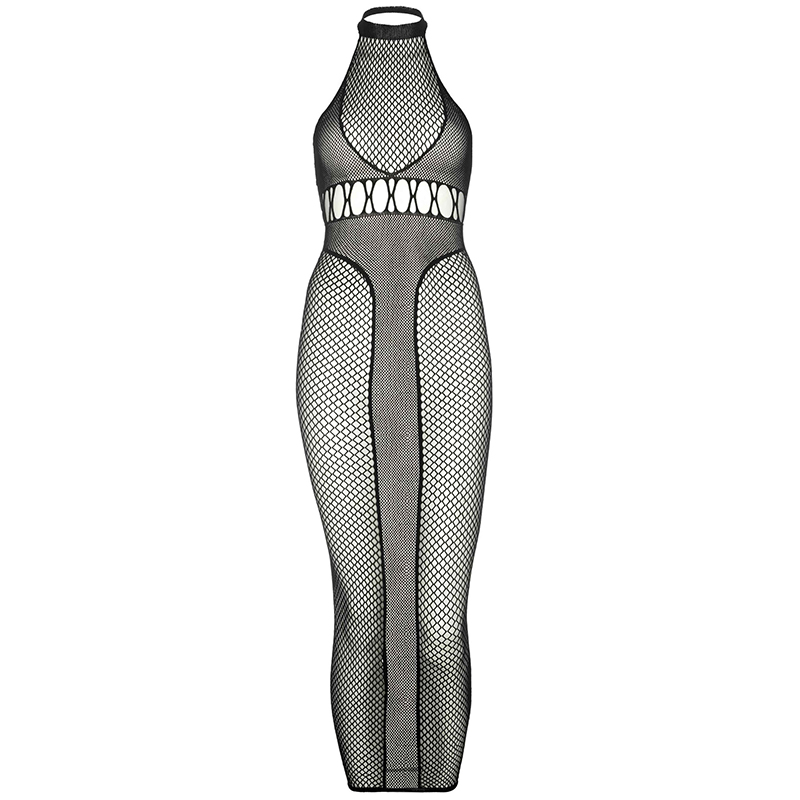 Net Halter Jurk met open details.