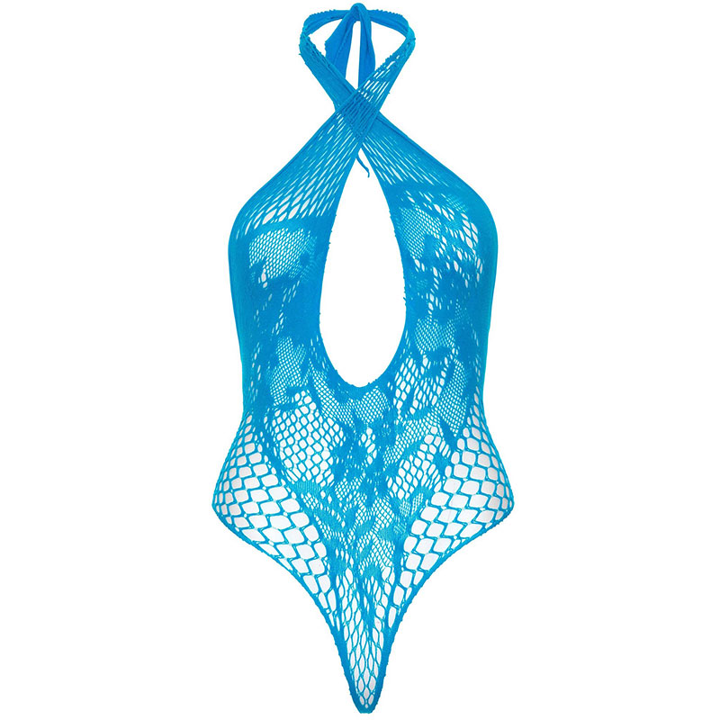 Lace and net halter teddy Turquoise
