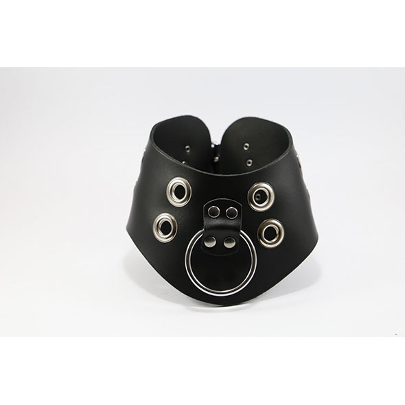 Stoere leren kraag inclusief riem versierd met open ringen