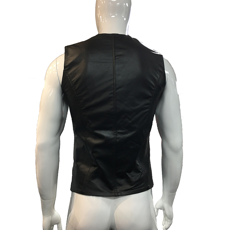 Prachtig vol lederen mouwloos vest met een rits aan de voorzeiden. Vest heeft aan beide zijkanten een geperforeerd stuk wat loopt vanaf de oksel naar beneden.