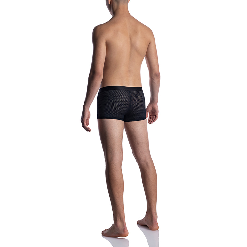 De M2051-serie van Manstore is een absoluut klimaatwonder. De talrijke piquéporiën laten veel lucht naar de huid. Het soepele materiaal is flinterdun en kreukvrij. De broek heeft geen zijnaden, maar is aan de voor- en achterkant gecentreerd. Ze vormen nadrukkelijk de contouren van het voorgebied. In het midden van de voorkant zijn de blauwe MNSTR-letters te zien op de zwarte brede tailleband – een echte blikvanger.