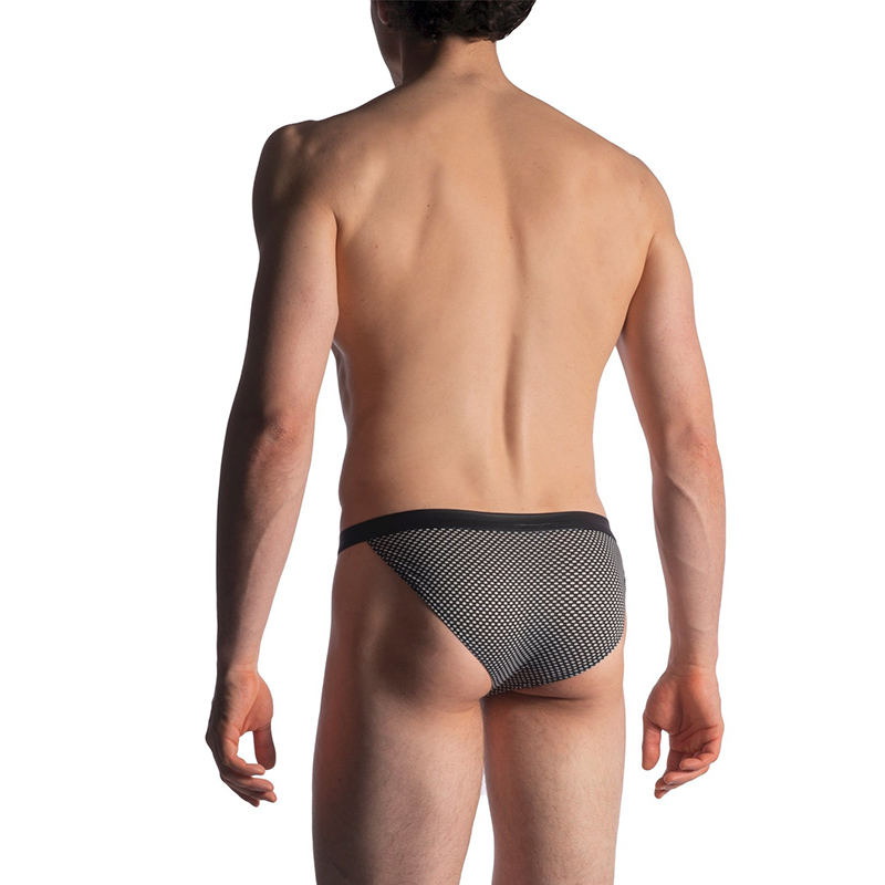 De M913 Micro Tanga van Manstore is gemaakt van een zeer elastische zwart-wit microfiber stof met een wafel patroon.
