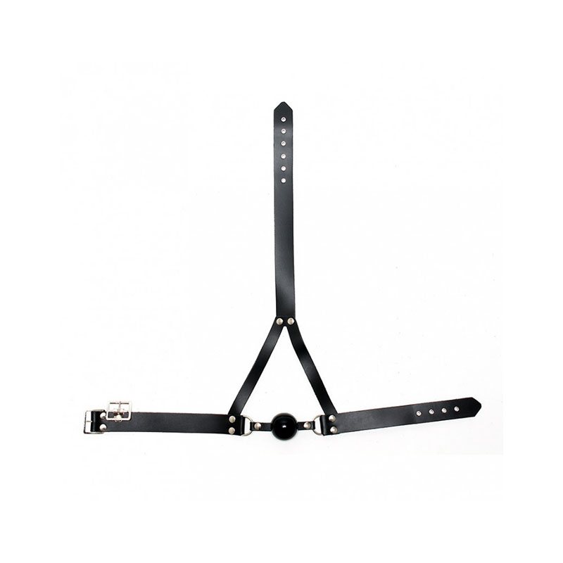 Lederen mondknevel met silicone bal van 44 mm. doorsnede. Deze mondknevel is te sluiten met een gesp aan de achterzijde over 8 posities. De lederen band is 3 cm breed.