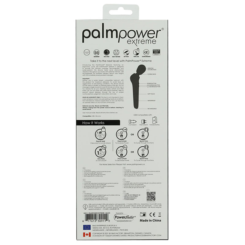 Ergonomisch gevormde massagestick van Palmpower extreme met flexibele kop en 7 krachtige vibratiemodi, evenals een multispeed-modus.