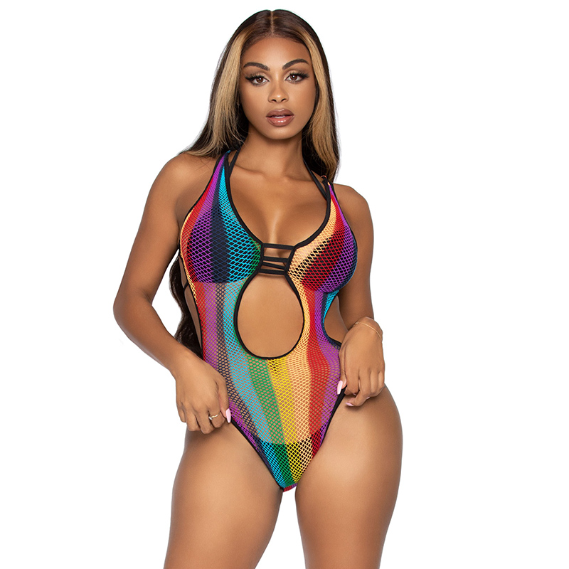 Rainbow fishnet bodysuit