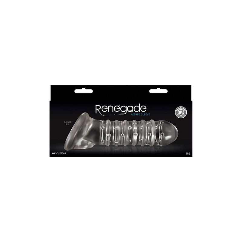 De extensie is aan de buitenkant geribbeld voor optimaal genot, en de binnentunnel is bekleed met zachte, geleiachtige noppen voor optimale stimulatie tijdens de seks. De Renegade Ribbed Sleeve kan met elk glijmiddel worden gebruikt voor maximaal genot.