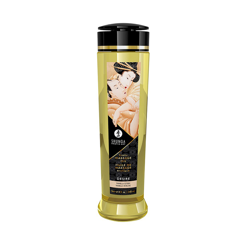 Shunga Massage Olie Verlangen Vanille is een waar genot voor het lichaam. Geniet van het van het geven of ontvangen van een sensuele, erotische massage met behulp van Shunga’s exclusieve mix van koudgeperste olie van amandelolie, druivenpitolie, sesamolie, avocado-olie, vitamine E, essentiële olie saffloerolie, extracten van ylang-ylang en yohimbe, en afhankelijk van de geur, essentiële olie extracten van lavendel, rozenbloesem, perzikbloesem, appelbloesem, oranjebloesem, en vanille. Deze oliën werden zorgvuldig geselecteerd op hun stimulerende en energieke kwaliteiten. Ze glijden soepel en gemakkelijk over je huid. Geen vette sensaties! Plus, een exotische geur zal je zintuigen naar de piek van plezier brengen.
