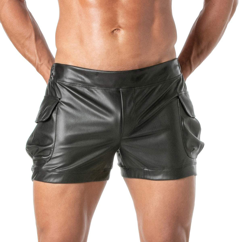 2 in 1 modulaire sexy overall short met cargozak en, of groot harnas met rits zak gemaakt van Pu-leer