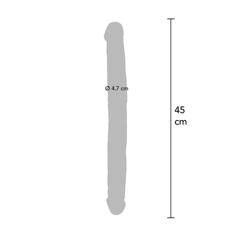 De Dubbele dildo PVC 45 cm biedt dubbel plezier met twee levensechte uiteinden. Perfect voor solo of partnergebruik.